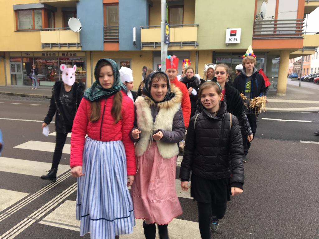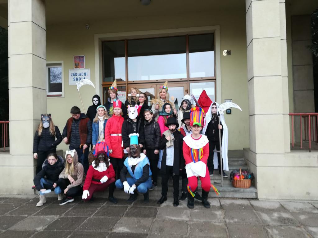 V těchto dnech vrcholí oslavy masopustu. Toto období plné tance, jídla, pití a nejrůznějších masek předchází předvelikonočnímu půstu. Tento rok se vybraní žáci zúčastnili masopustního průvodu, který pořádala ZŠ Waldorfská společně s Městským úřadem Pardubice V. Přípravy na tento den však nebyly jednoduché. Hodné maminky a babičky šily, zruční tatínkové a dědečkové pomáhali vyrábět různé rekvizity a ve škole jsme se snažili kostýmy doladit barevným kartonem, krepovým papírem či slámou. A tak jsme společnými silami vyráběli kostýmy tradičních postav masopustu jako je kominík, Turek, slaměný, žid, smrtka, ras či medvěd nebo selka. Po náročném tvoření nám byl odměnou den, kdy jsme se mohli vydat na průvod. Nejprve naše cesta vedla k sídlu rychtáře (starosty), který pověřil Laufra masopustním průvodem. Pak nechybělo nic, aby mohlo být zahájeno v doprovodu živé kapely masopustní veselí s tancem a tradičními masopustními pochutinami jako jsou koláče či zabíjačkové dobroty. Jak nám to slušelo, můžete posoudit sami….