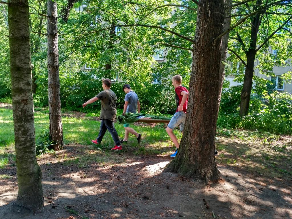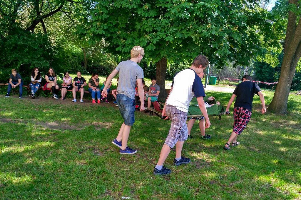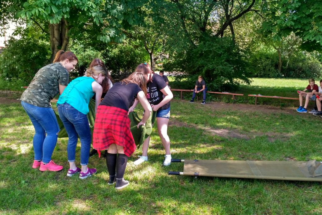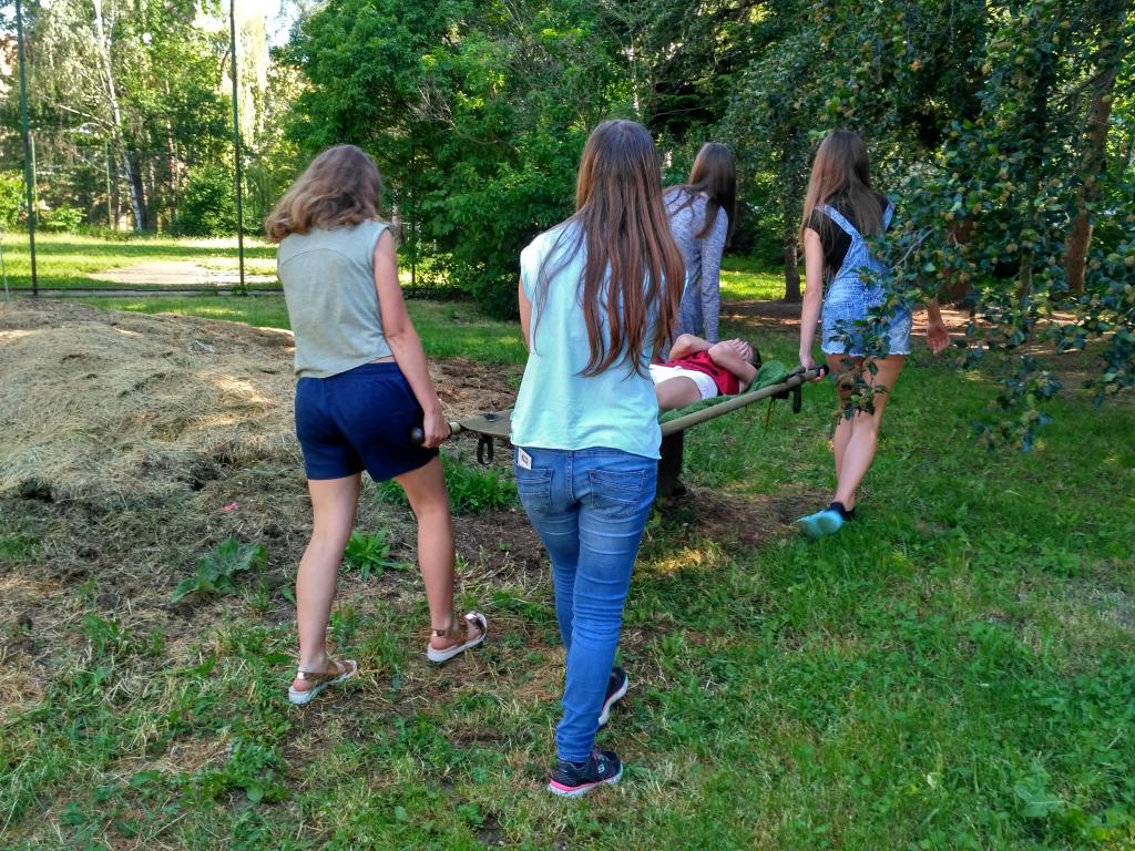 Není od věci některé teorie ověřit v praxi. Transport raněných jsme si už zkusili při projektovém dnu o mimořádných událostech. Ale nést člověka na nosítkách celých 200m, je zkušenost zcela jiná, namahavější, bolestivější, odpovědnější a vyčerpávající. Modelou situaci jsme zvládli a žádného raněného jsme nevyklopili. V reálném životě si budeme přát, abychom takovou situaci nemuseli řešit, úrazům budeme předcházet a pokud přesto něco takového zažijeme, tak máme natrénováno.