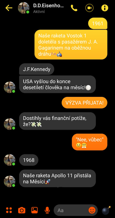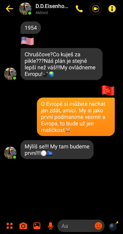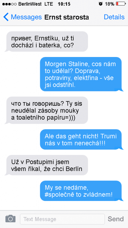 + ddú - vytvořte sms-rozhovor k dané době a událostem ;o) (pracujte s www.ifaketextmessage.com nebo podobnou stránkou a užijte si to=))