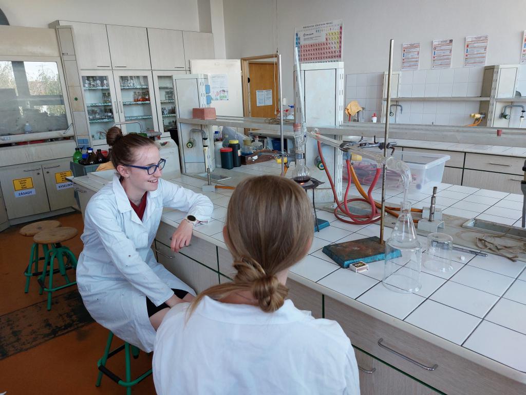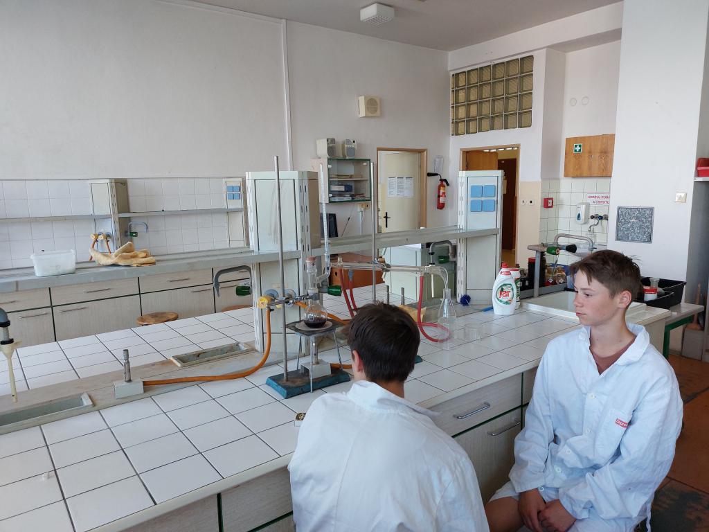 Kahany se nám zahřívají, zkumavky se leští a 4 z naší třídy byli na cestě do labortoře Gymnázia Dašická, když nám bylo nabídnuto malé prokouknutí do zázraků moderní chemie. Od základů a destilace vína se nám podařilo zachytit i stopy stříbra na zkumavce.