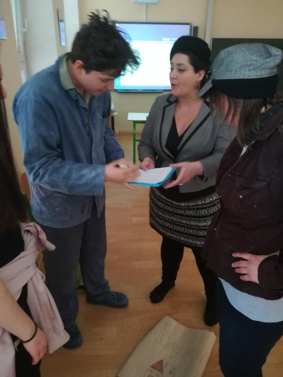 V dubnu proběhl zážitkový workshop společnosti Post Bellum o. s. na půdě naší školy. Kolektivizace, zakládání JZD, volby, mezilidské vztahy, následky vlastních činů - vše v kulise 50. let minulého století v malé vesničce Úboč. Na vlastní kůži si vše vyzkoušelo 15 statečných, kteří dorazili těsně po přijímačkách a těsně před velikonočním volnem. Jak vidno z fotek, nelitovali a užili si celodenní dějepis=)