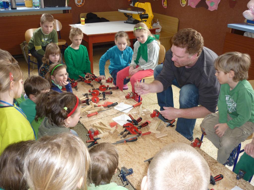 Do školní družinky znovu zavítala oblíbená dřevíčková dílnička. Děti si mohly pomocí zmenšenin nástrojů vytvořit velikonoční řehtačky a fixami je dobarvit. V závěru došlo i na přání, šikovný pán dětem pomohl vyrobit například malé zvířátko apod. Děti se nejen dobře bavily, ale zdokonalily se ve zručnosti a připomněly si i velikonoční zvyky.