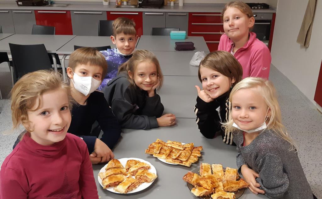 Na kroužku vaření jseme pracovali s listovým těstem, s těstem na palačinky, zručnost byla třeba při přípravě ovocných špízů. Tvořili jsme pomazánky, pudinky. Na vánoční čas jsme si natrénovali pečení perníčků, ale i vanilkových rohlíčků. Děti s radostí ochutnávaly co si samy uvařily a zbylo i na ochutnávku domů.