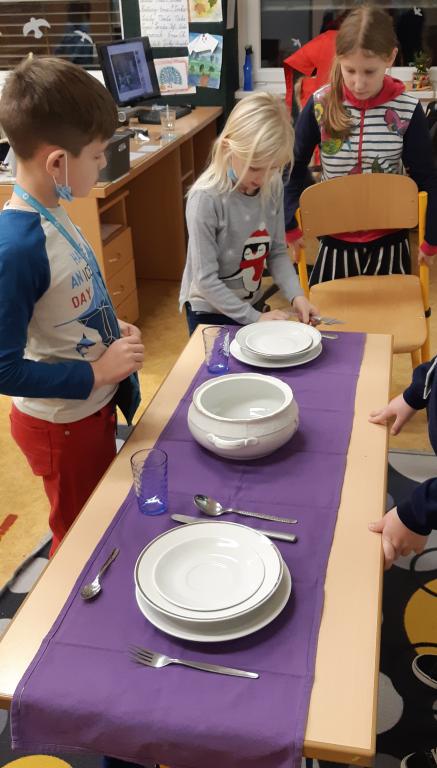 K vaření patří i prostření svátečního stolu. Jak takový stůl prostřít si děti osvojily, stejně tak i jako chování při stolování. Na vánoční prázdniny jsme všichni odcházeli s nadšením jak připravíme štědrovečerní stůl podle toho, co jsme se naučili.