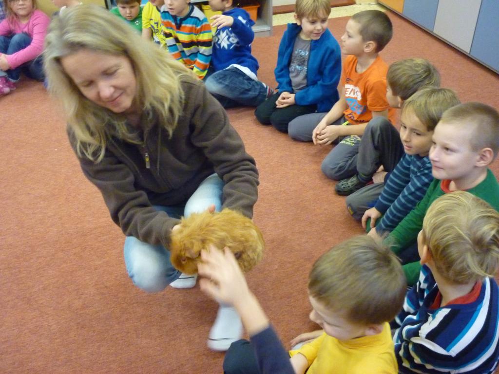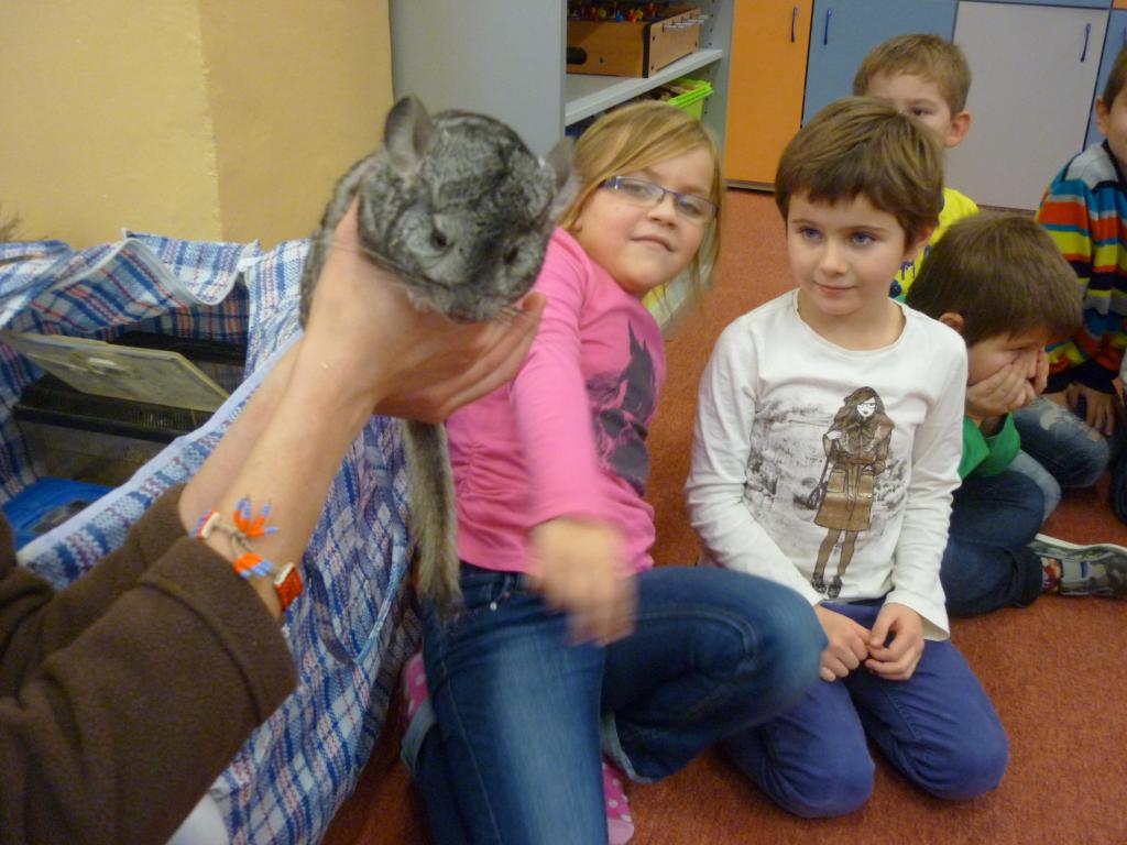 V úterý 2. prosince 2014 nás navštívila chundelatá zvířátka. Dozvěděli jsme se, že se jim říká savci. Podívat se na nás přišli křeček, morčátko, králíček, činčila, osmák, a dokonce i pejsek. Všechna zvířátka jsme si mohli pohladit a dozvědět se o nich čím se živí, kolik mají mláďátek, jak je chovat, apod. Bylo až neuvěřitelné, jak byla zvířátka poslušná, z nich bychom si mohli vzít příklad.