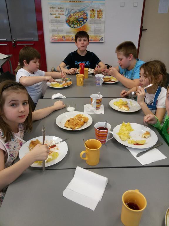 Dnešní menu na kroužku vaření je smažený sýr s bramborem a voňavý čajík:) To je abyste věděli, že se ničeho nebojíme, jdeme i do dobroučké večeře přímo z plotny. A na čem si smlsneme příště? Budou křupavé bramboráčky :) mňám.