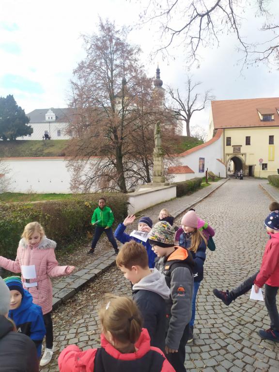 Děti na začátku prohlídky dostali pracovní list, do kterého vlepovali hrdinu, o kterém nám vyprávěla zábavně průvodkyně. Měli jsme tak možnost dozvědět se o Vojtěchovi a zubrovi nebo o Svaté Kateřině.
