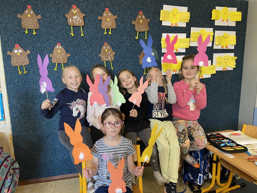 Duben se v naší družince nesl v duchu příchodu jara. Děti vyráběly jarní výzdobu na nástěnku v podobě motýlků, tulipánů a tvořila se také Velikonoční výzdoba. Jarní dny trávíme vyprávěním si o probouzející se přírodě.