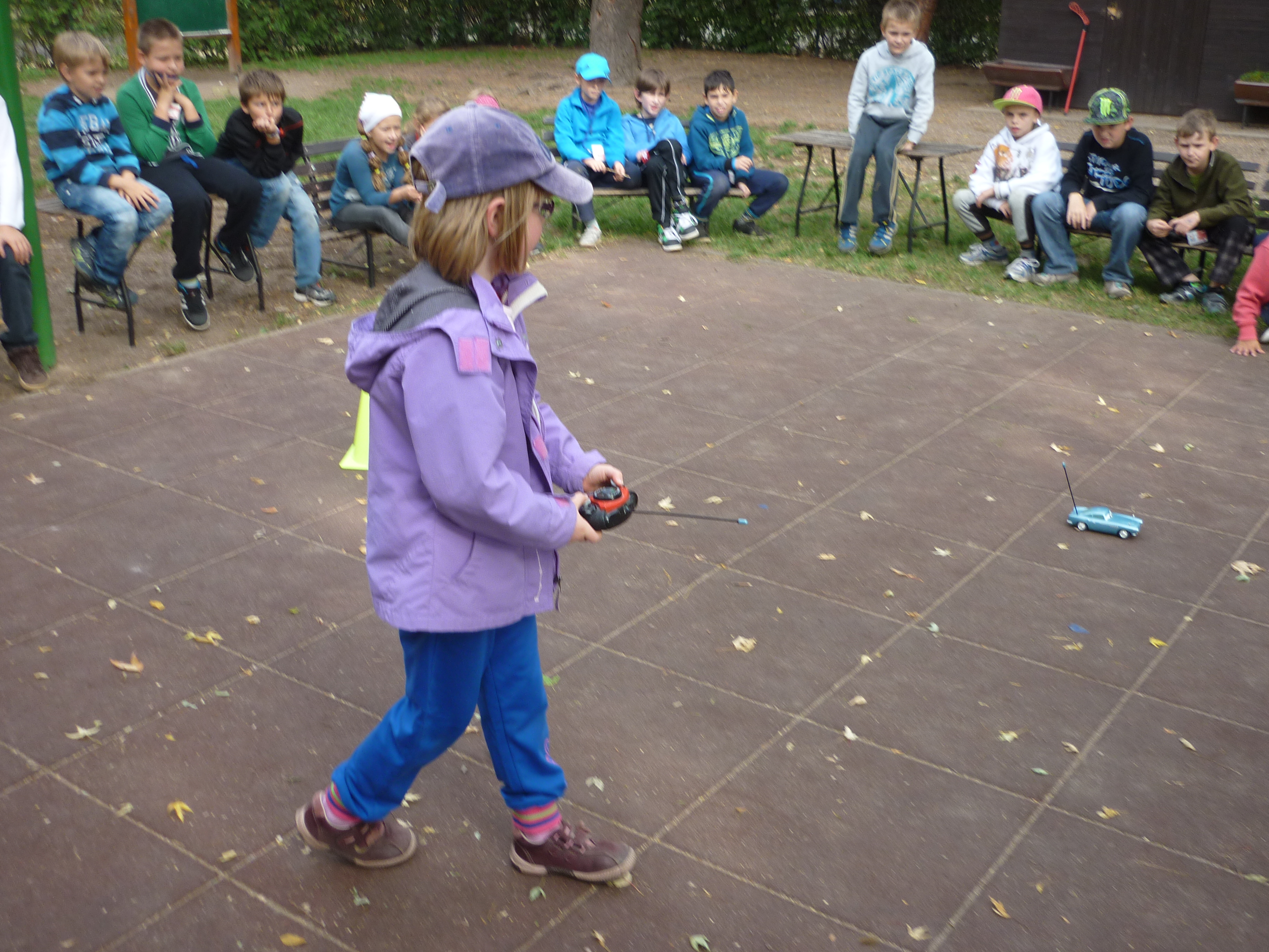 Ve středu 8. 10. se naše družinkové hřiště proměnilo v závodní dráhu autíček na dálkové ovládání. Velké ceny se účastnilo celkem 11 závodníků a 2 závodnice. První disciplína byla založená na rychlosti a v druhé šlo především o šikovnost potřebnou při slalomu mezi kužely.