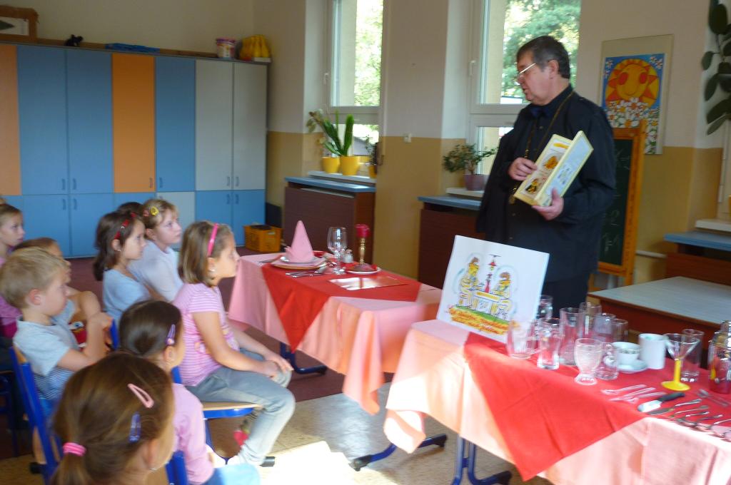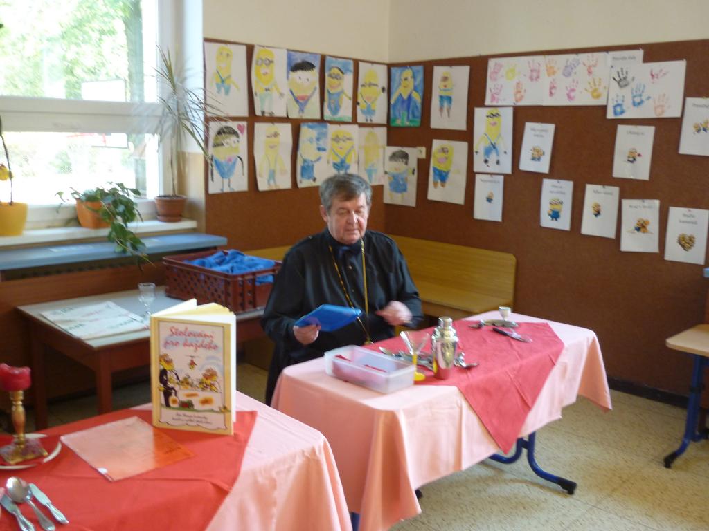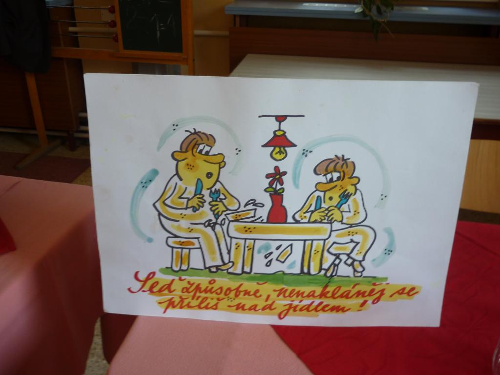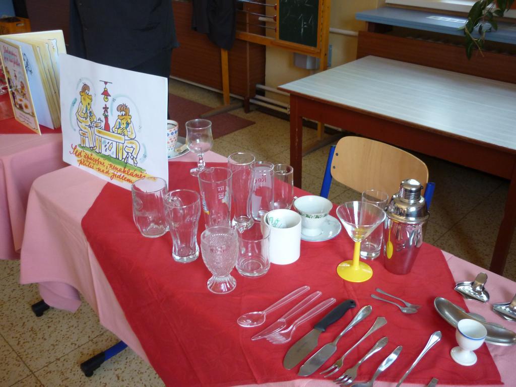Protože už nejsme v dobách středověku, kde se při stolování házely kosti od jídla na zem, ale jsme ve společnosti, která má nastavená svá pravidla, tak i my chceme přispět k dílu svým slušným chováním při stolování. Pomohl nám s tím pan Lušovský, který přišel s praktickou přednáškou a ukázkami stolování. Dozvěděly jsme se jak se které příbory používají, na co nám slouží různé druhy skleniček, apod.