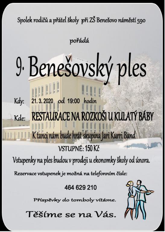 Z důvodu nařízení Ministerstva zdravotnictví ČR kvůli koronaviru se společenské akce nad 100 osob ruší.  Benešovský ples se odkládá na neurčito. Pokud se konat nebude, peníze za vstupné vám vrátíme. Uvidíme, jak se bude celá situace vyvíjet.