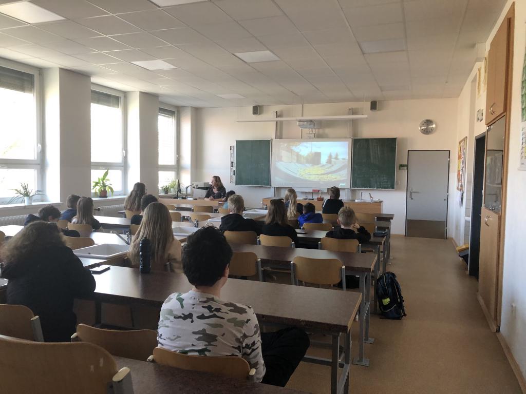 Třída 8. A pod vedením pana učitele Kopeckého a paní učitelky Sobolíkové si připravila stanoviště, na kterých si žáci 1. stupně vyzkoušeli, jak třídit odpad a jak zabránit nadměrnému užívání plastů. Mezitím se v prostorách školy jednotlivé třídy 2. stupně věnovaly různým ekologickým tématům, například spotřebě vody, třídění odpadu anebo udržitelnému rozvoji. Výstupem byla tvorba informačních plakátů na ohrožené druhy zvířat, hnutí Greenpeace a Duha. Některé třídy si vyzkoušely pokusy s propustností vody, jiné se snažily vymyslet plán využití a recyklace odpadu.
