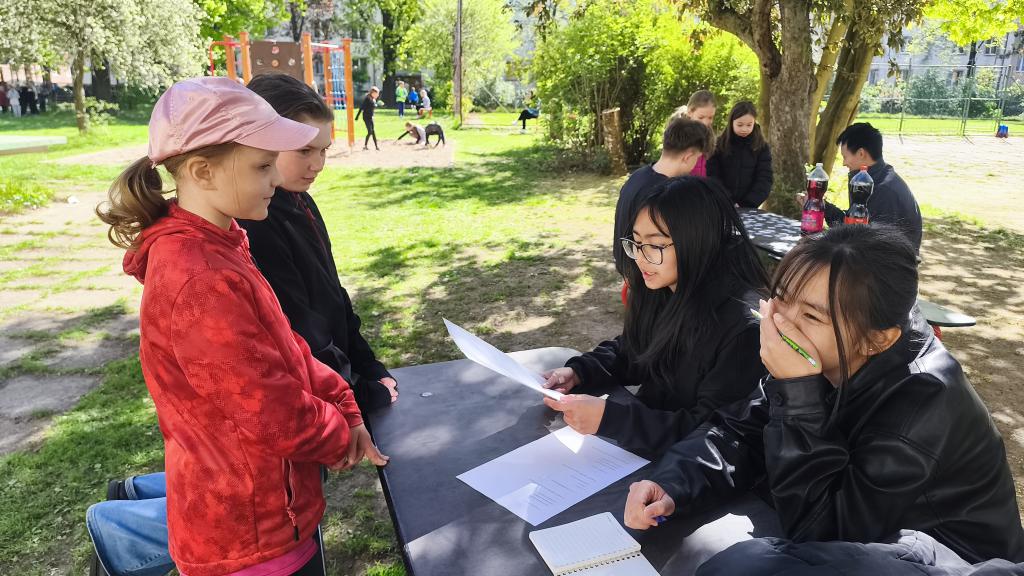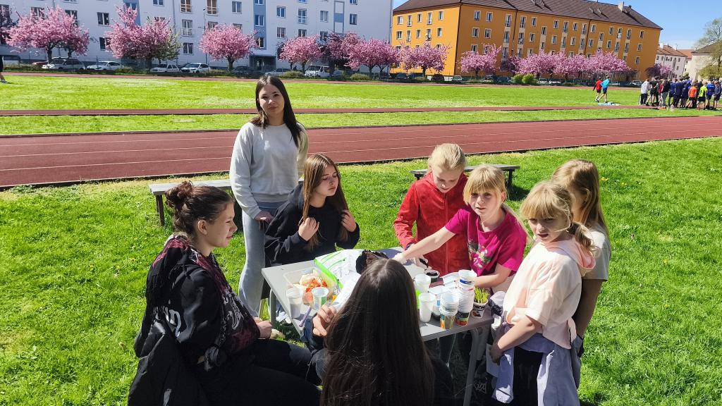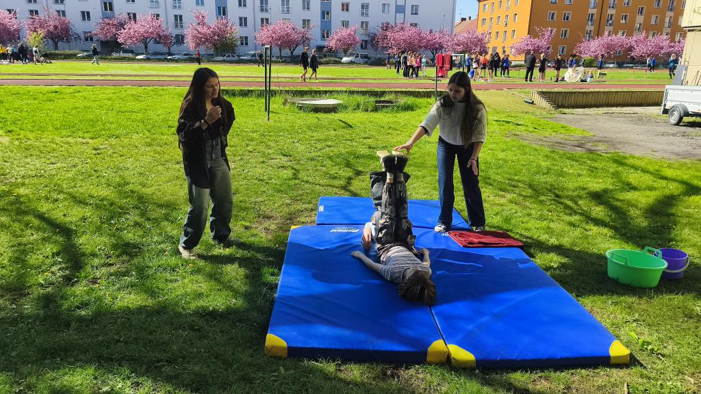 Na školním pozemku si žáci třídy 8.C připravili pro své mladší spolužáky zábavný program zaměřený na ochranu přírody. Pro žáky 3. a 4. tříd vytvořili několik stanovišť, na kterých jim hravou formou předávali důležité informace o ochraně planety. Děti si mohly vyzkoušet různé úkoly, odpovídat na otázky nebo plnit tematické hry zaměřené například na třídění odpadu či šetření přírodních zdrojů.