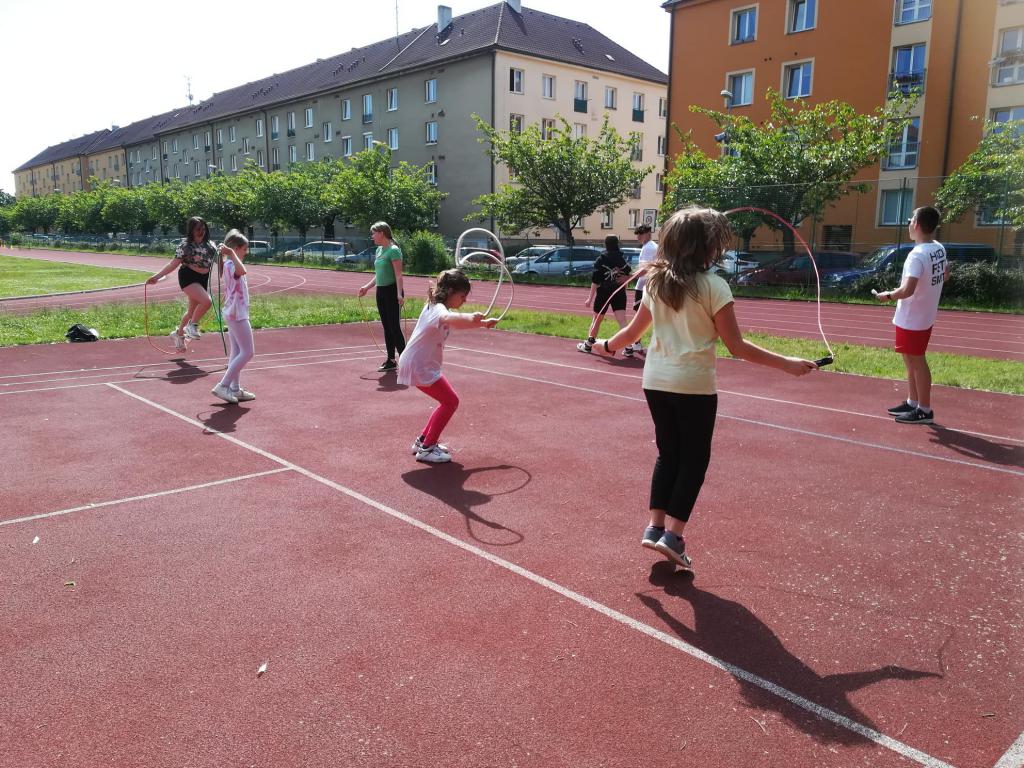 Na hřišti školy bylo 17 stanovišť s různými úkoly, které děti plnily a za jejich splnění dostaly zasloužené razítko do kartičky.