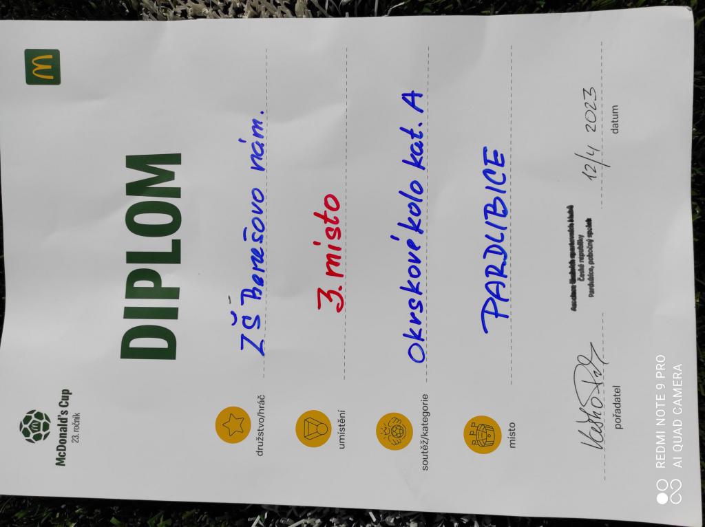 Dnes dopoledne jsme se zúčastnili meziškolního fotbalového utkání desíti škol města Pardubice. (Okrskové kolo)