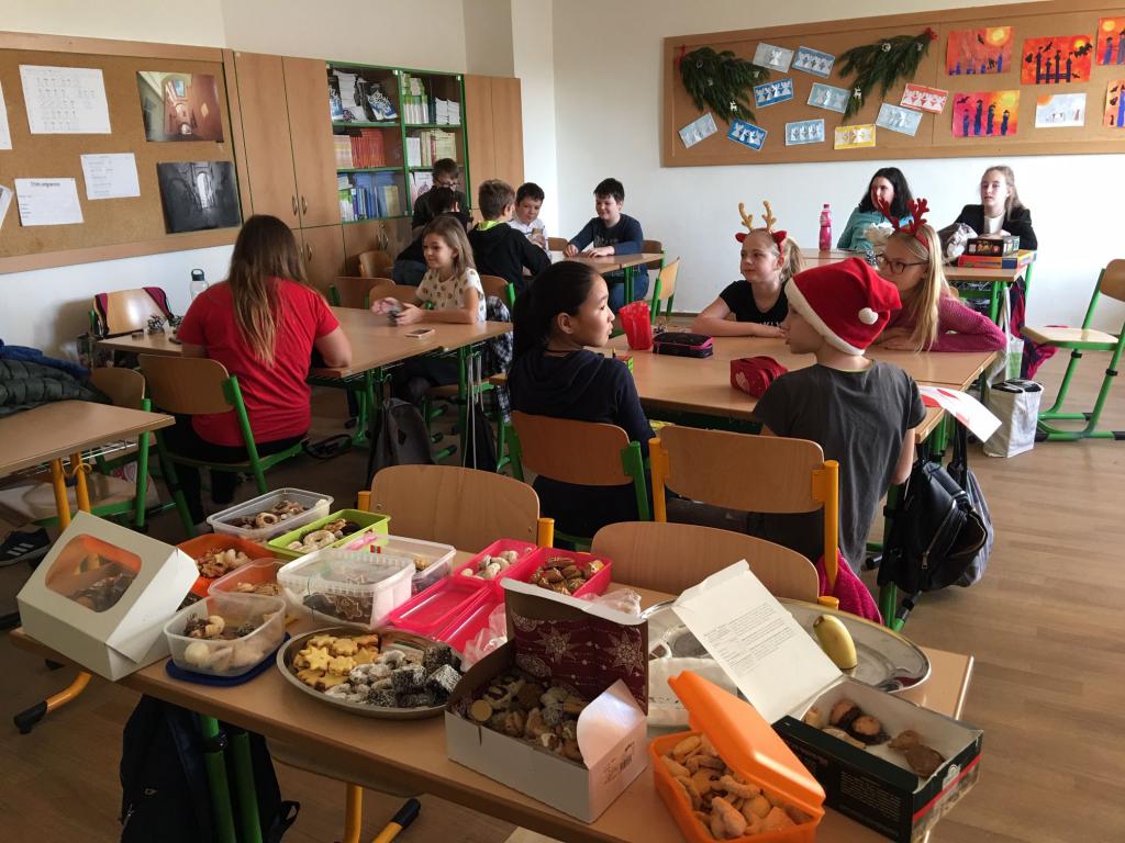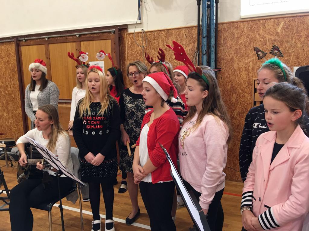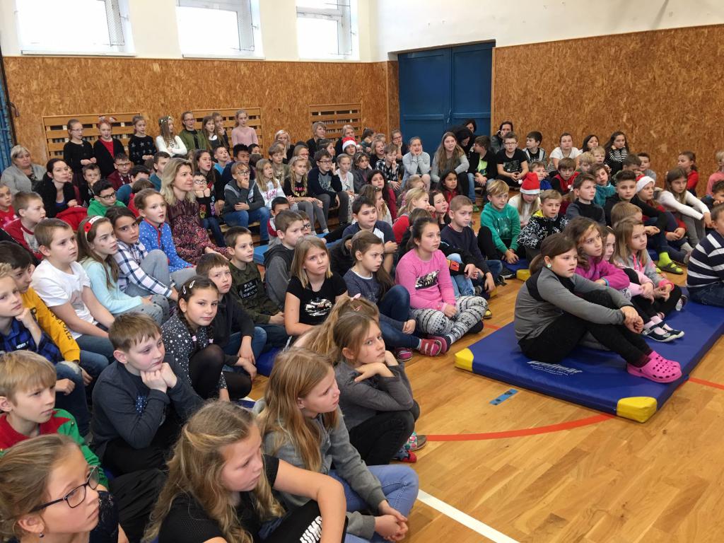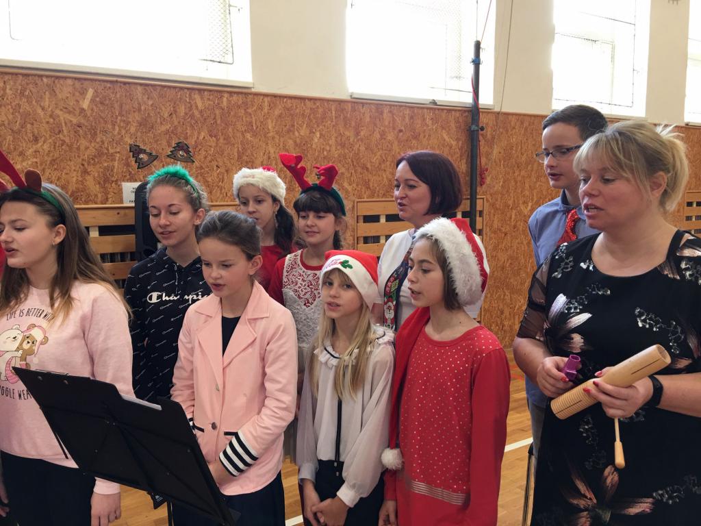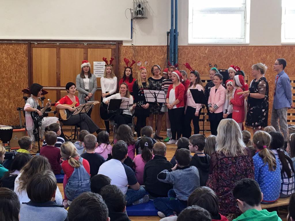 O zpestření dne se zasloužil Benešovský sboreček. Jak už je na naší škole zvykem, nejen ráno před začátkem výuky žáci společně s paními učitelkami nám zazpívali a zahráli na přivítanou, ale navíc připravili koncert s vánočními písněmi pro žáky 1. stupně.