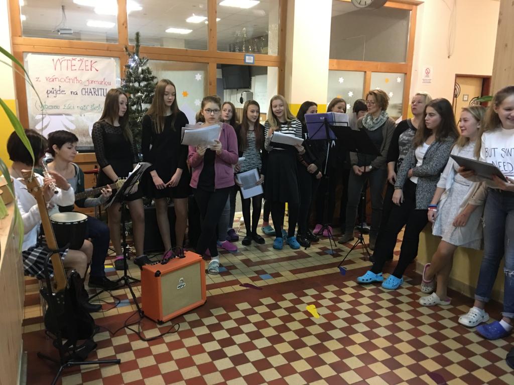 Vánoční atmosféru zpříjemnilo společné muzicírování dětí a učitelů. Melodie známých i méně známých interpretů se linuly školou již od listopadu při secvičování. Součástí byla i přehlídka hudebních nástrojů – kytary, klavír, flétna, lesní roh, bicí, djembe a orffovy nástroje. Koncert oživily příjemné hlasy sólového zpěvu žákyň 8. třídy.