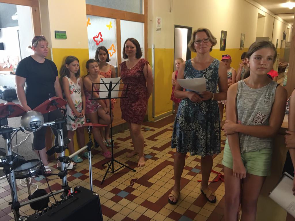 Děkujeme našim školním zpěváčkům a paním učitelkám Hezké, Sobolíkové, Štruncové, Schoberové, Paarové a Shánělové za zpříjemnění posledních dnů školního roku žákům i učitelům. Můžete si přijít poslechnou i vy. Už nám zbývají dva dny.
