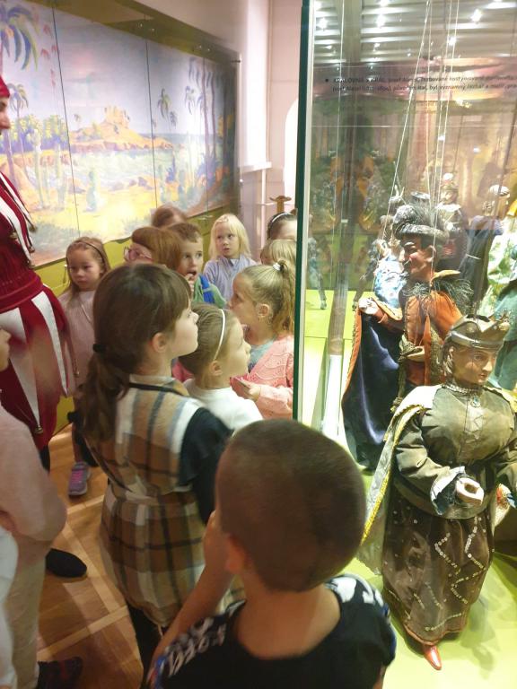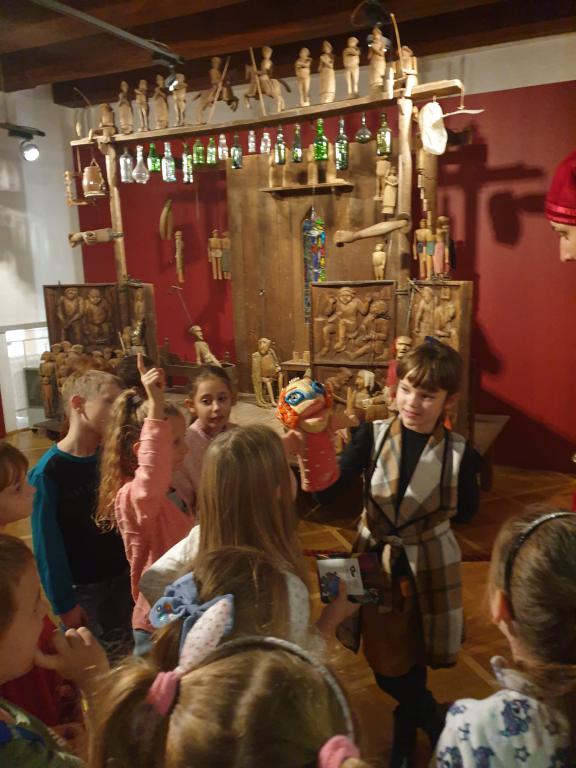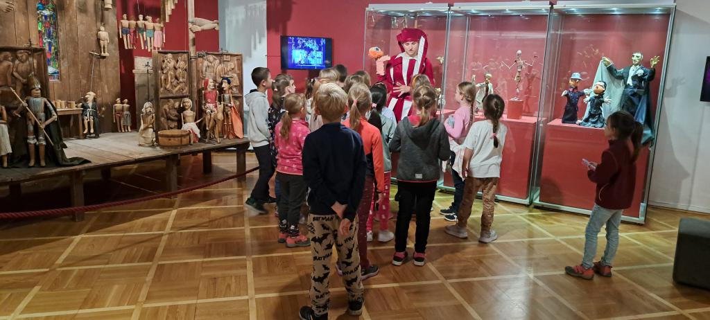 Nezapomněli jsme se zastavit i v herně, kde jsme si mohli vyzkoušet hraní opravdového loutkového divadla. Návštěva byla zakončena nákupem suvenýrů v muzejním obchůdku a svačinou na Resselově náměstí.